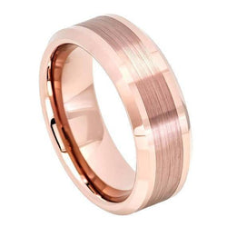 - Rose Gold Carbide Tungsten Wedding Ring Brushed Center High Polish Beveled Edge - 8mm