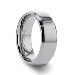 - HERRIN Men’s Beveled Titanium Wedding Ring With Raised Center Highly Polished 6mm & 8mm