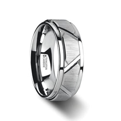 - Admetus Tungsten Ring With Triangle Angle Grooves And Raised Brushed Center - 8mm
