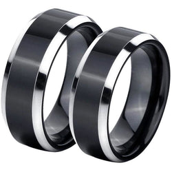 - Two-Tone Tungsten Wedding Band Set With Brush Finish and Silver Beveled Edges - 6mm & 8mm