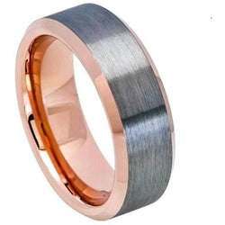 - Beveled Two-Tone Rose Gold Tungsten Wedding Ring With Brushed Gun Metal Finish - 8mm