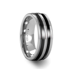 - CLANTON Tungsten Wedding Band With Dual Offset Black Ceramic Inlays - 8mm