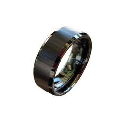 - Men's Black Tungsten Ring w/ Brushed Finish and High Polished Beveled Edges 6mm & 8mm