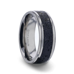 - DURANGO Beveled Black And Gray Lava Inlaid Titanium Men's Wedding Band 8mm