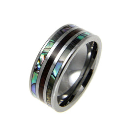 - Mens Tungsten Band Ring Genuine Inlay Hawaiian Koa Wood Abalone Shell Comfort Fit - 8mm