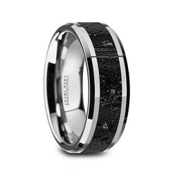 - Theo Men's Domed Tungsten Black & Grey Lava Rock Stone Wedding Band - 8mm
