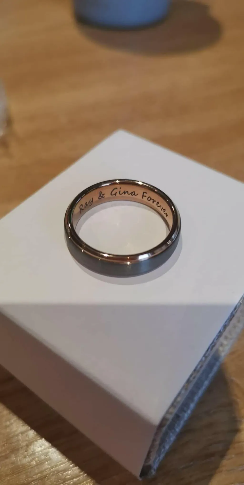 We offer a free laser engraving service with this ring, with various stylish fonts to choose from and a limit of up to 30 characters per message. It’s an easy and convenient way to customize wedding bands and make them one of a kind as well as extra special. Apart from this service, you’ll also receive a free jewelry box and free USA shipping with every order.