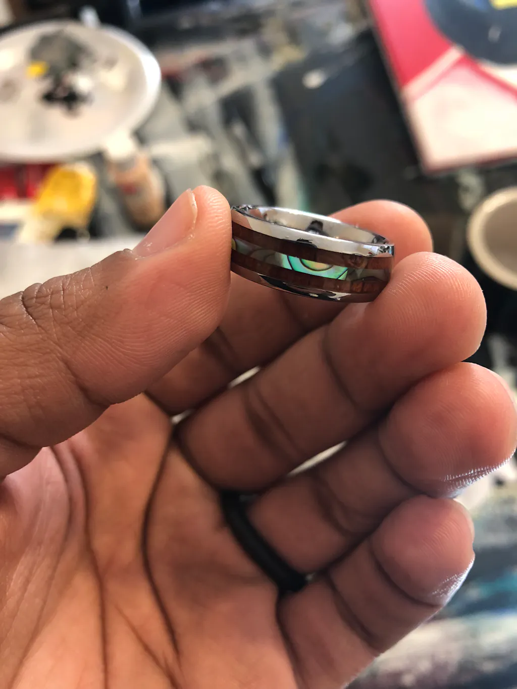 Bellamy Abalone and Hawaiian Koa Wood Inlaid Tungsten Wedding Band - 6mm & 8mm