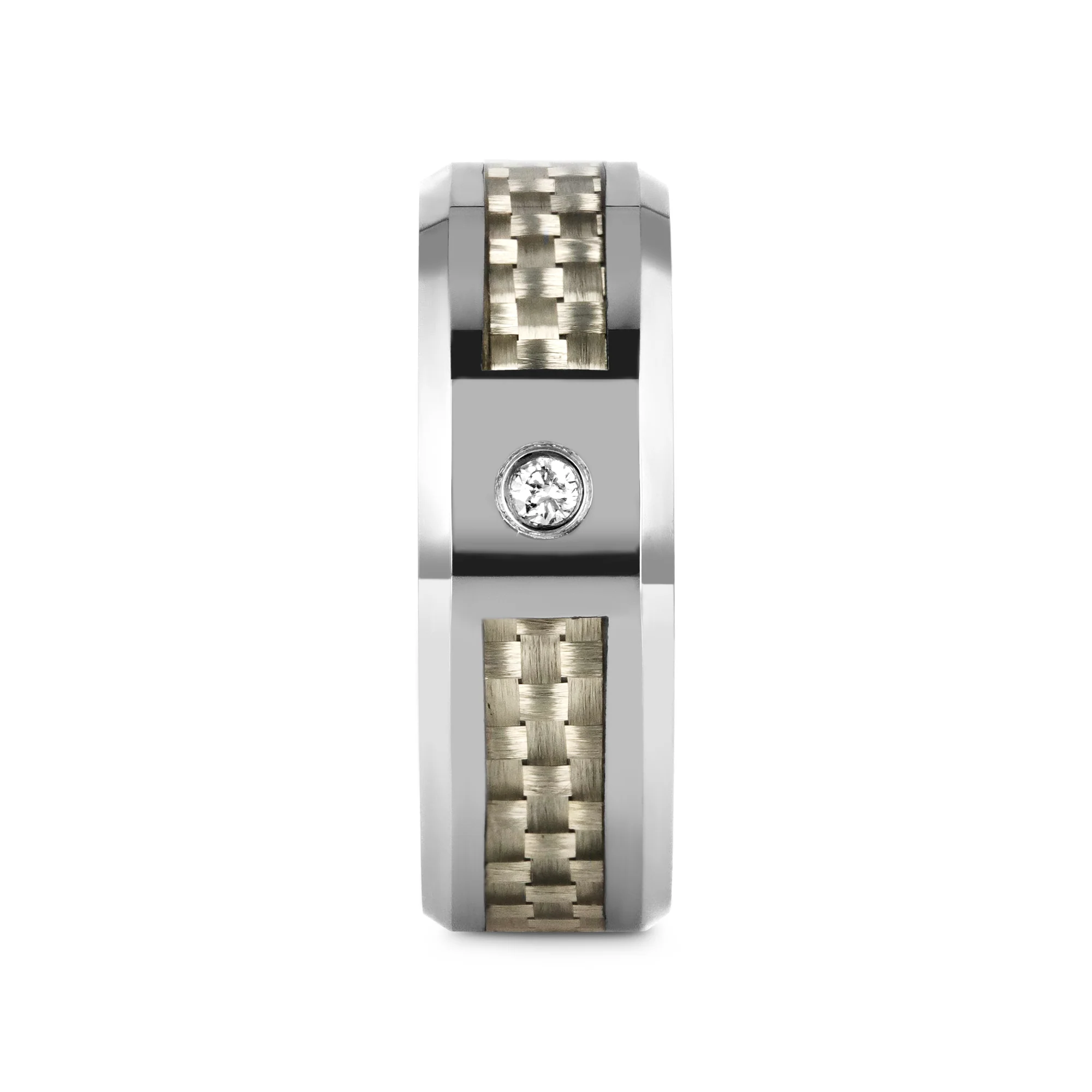 LARK Tungsten Ring With White Carbon Fiber And White Diamond Setting - 8mm