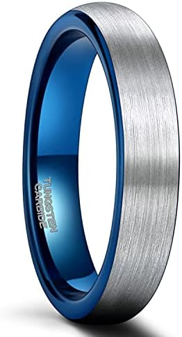 Dacre Tungsten Carbide Wedding Ring Comfort Fit Blue Round Domed Brushed - 2mm - 8mm