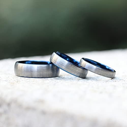 Tungsten Carbide Wedding Ring Comfort Fit Blue Round Domed Brushed - 6mm